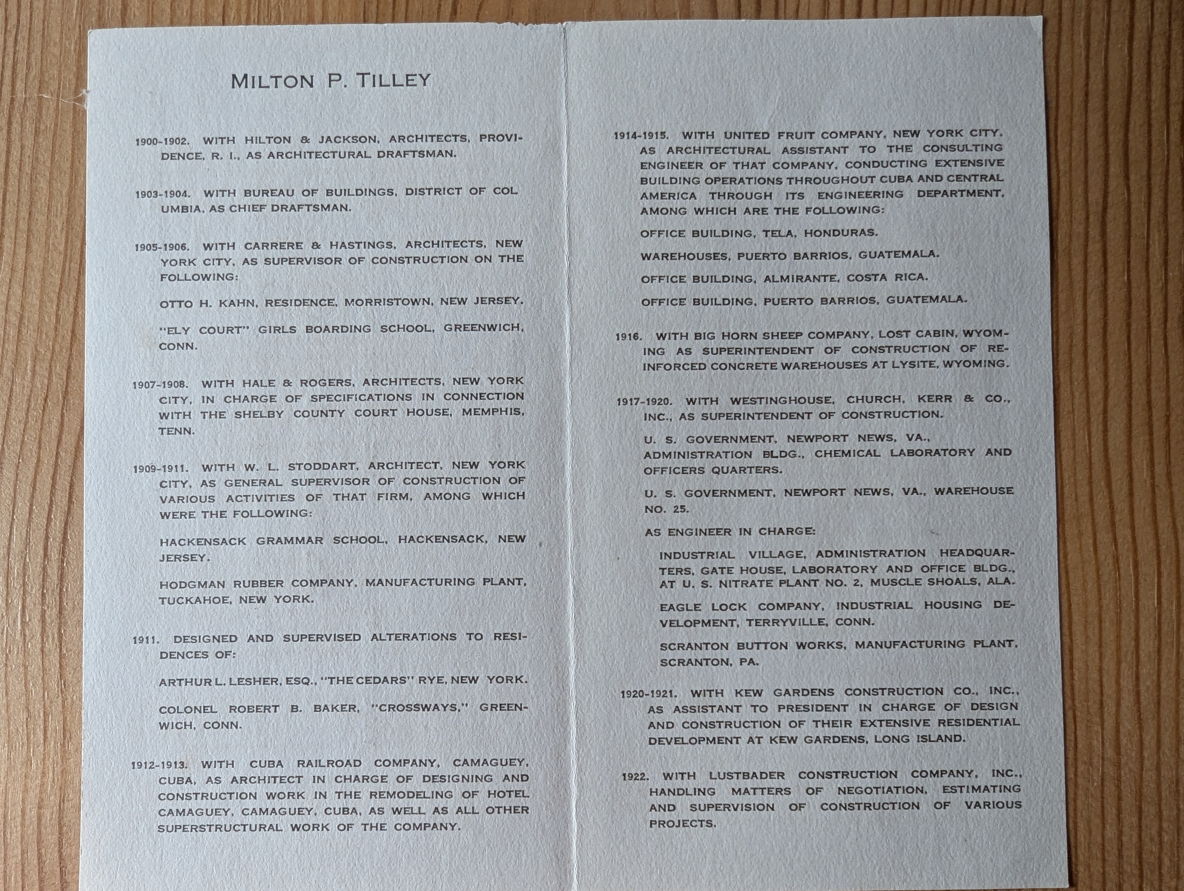 Milton Tilley Resume 1922 on his hire by Bowie, Lydon and Co. in Chicago